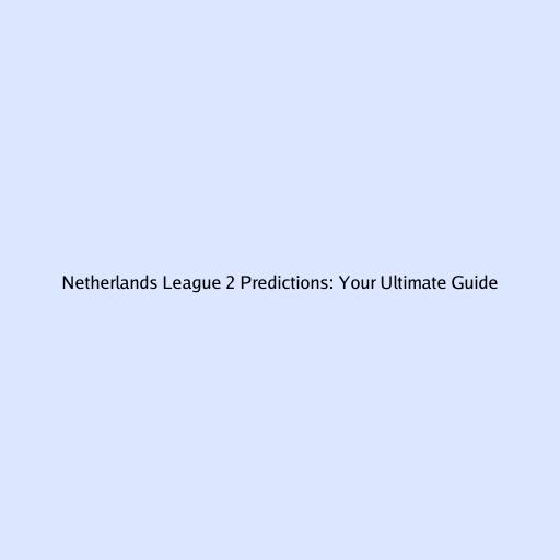 Netherlands League 2 Predictions: Your Ultimate Guide