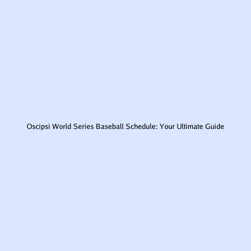 Oscipsi World Series Baseball Schedule: Your Ultimate Guide