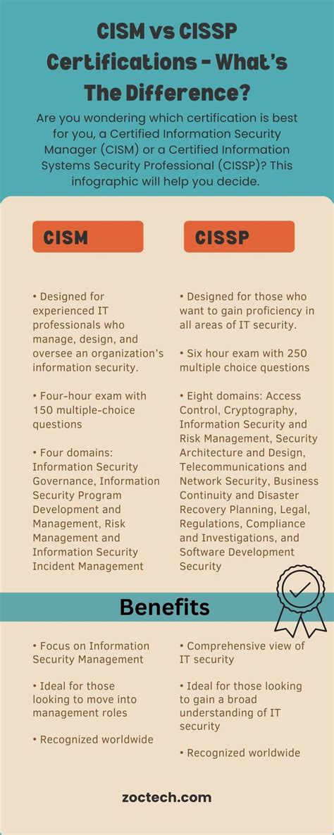• CISSP: Security management, strategic focus, broad knowledge base, experience requirement.