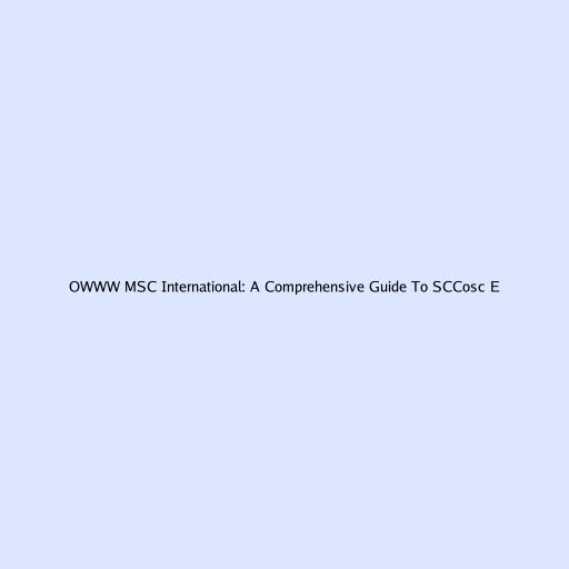OWWW MSC International: A Comprehensive Guide To SCCosc E