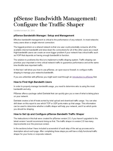 Okay, guys, you've got your pfsense bandwidth monitoring up and running, and you're seeing all this fantastic data thanks to tools like `nTOPng`. But what do you do with it? This is where traffic shaping comes in, and it's where Pfsense truly shines. Traffic shaping, also known as Quality of Service (QoS), is all about prioritizing certain types of network traffic over others and ensuring fair usage for everyone. It's the intelligent way to manage your bandwidth, rather than just letting it be a free-for-all. With the insights from your monitoring, you can make informed decisions about how to shape your traffic. For example, if your monitoring shows that Voice over IP (VoIP) calls are frequently experiencing jitter or dropouts because they're competing with large file downloads, you can use the traffic shaper to give VoIP traffic higher priority. This means that even when the network is busy, your calls will get the bandwidth they need to stay clear and uninterrupted. Similarly, if you find that certain applications are consuming excessive bandwidth during business hours (think large cloud backups or peer-to-peer file sharing), you can use traffic shaping to limit their bandwidth or schedule them for off-peak hours. This ensures that critical business applications and general internet browsing remain responsive for all users. Configuring traffic shaping in Pfsense involves creating `Queues` and `Rules` . Queues define the bandwidth limits and priorities, while rules specify which traffic types get placed into which queues. You can create queues based on various criteria: source IP, destination IP, protocol, port, or even DSCP (Differentiated Services Code Point) markings. For instance, you might create a high-priority queue for all traffic originating from your VoIP server's IP address. Then, you'd create a rule that matches traffic to/from that IP and assigns it to the high-priority queue. For less critical traffic, you might create lower-priority queues with bandwidth caps. The Pfsense GUI makes this process relatively straightforward, though it can become complex with very granular configurations. It's a good idea to start simple: identify your most critical applications (e.g., business apps, VoIP) and your biggest bandwidth consumers (e.g., streaming, large downloads). Then, create queues and rules to manage them accordingly. Remember, the goal isn't to starve certain applications but to ensure that the most important ones perform reliably. This is especially crucial for businesses that depend on consistent network performance for their operations. By effectively combining pfsense bandwidth monitoring with traffic shaping, you can achieve a much more stable, predictable, and efficient network experience for all your users. It's about taking control and making your internet connection work for* you, not against you.