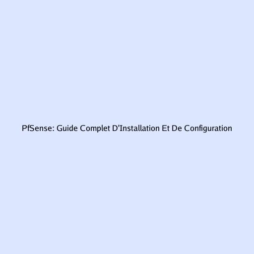 PfSense: Guide Complet D'Installation Et De Configuration