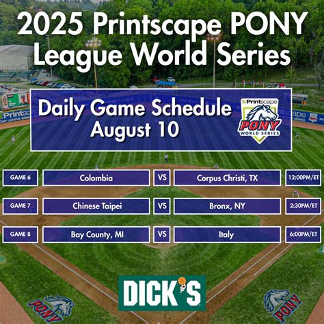 Throughout the tournament, you’ll witness a display of talent, strategy, and determination. Teams will battle it out on the field. The schedule is your roadmap to all the action! The schedule details the dates, times, and locations of each game. So make sure you mark your calendars and plan your viewing schedule accordingly! You can usually find the schedule on the official Pony World Series website or on major sports news outlets. Stay updated on the schedule. Check the official website or social media to stay updated. Keep in mind that schedules can sometimes change, so it’s always good to stay informed. Remember, the schedule is your guide! The Pony World Series promises to be an exciting event filled with nail-biting finishes, incredible plays, and the thrill of victory. Make sure you don’t miss any of the action. So, get ready to witness the excitement of the Pony World Series 2025 ! It’s going to be a blast! This event is a great opportunity to witness the skills of young athletes and celebrate the passion and dedication that goes into the sport. It’s truly a celebration of talent, teamwork, and the spirit of the game. Let the games begin! The Pony World Series will be a time of excitement, competition, and memorable moments.