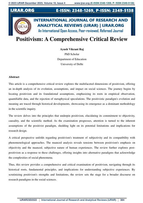 Criticisms and Limitations of Positivism Universalis