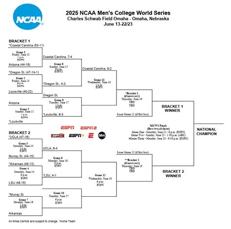 • Do Your Research: Before filling out your bracket, take some time to research the teams competing in the College World Series. Look at their regular-season records, their performance in the regional and super-regional rounds, and their key players. Pay attention to their offensive and defensive stats, as well as their pitching rotation. The more you know about each team, the better equipped you’ll be to make informed predictions.