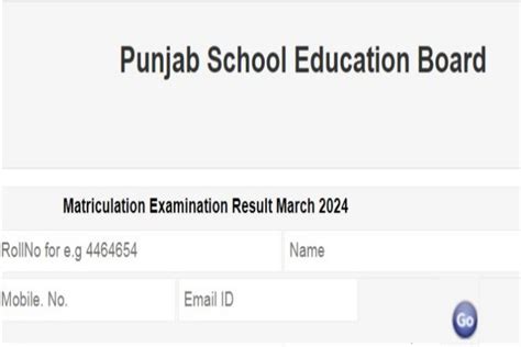 3. Locate the Class 10 Results Link: Once you’re in the results section, find the specific link for the “PSEB Class 10 Examination Results 2024” or “Matriculation Examination Results 2024.”