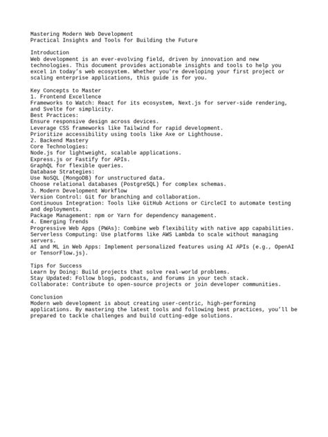 Remember, web development is a journey, not a destination. Keep learning, keep experimenting, and keep building! With the right approach and a commitment to these core principles, you can create amazing websites and web applications that will delight users and achieve your project goals. So, get out there, start building, and show the world what you can do. The possibilities are endless. Good luck and happy coding!