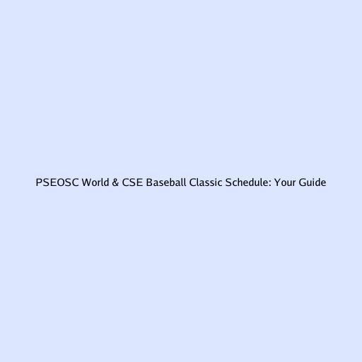 PSEOSC World & CSE Baseball Classic Schedule: Your Ultimate Guide
