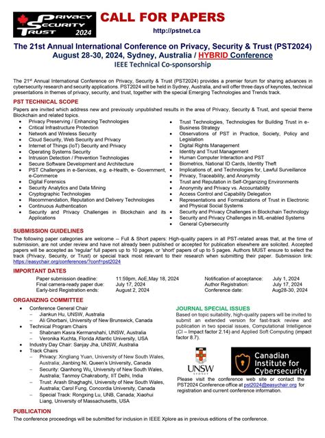 Firstly, PST 2024 offers unparalleled learning opportunities. Attendees gain access to the latest research findings, innovative technologies, and best practices in privacy, security, and trust. The conference features presentations by leading experts from around the world, covering a wide range of topics from advanced encryption techniques to privacy-enhancing technologies. These sessions provide valuable insights into the challenges and opportunities in the field, helping attendees to expand their knowledge and skills. Secondly, PST 2024 is an excellent platform for networking and collaboration. The conference brings together researchers, industry professionals, and policymakers from diverse backgrounds, creating opportunities for meaningful interactions and partnerships. Attendees can connect with peers, exchange ideas, and explore potential collaborations that can lead to new research projects, business ventures, and policy initiatives. The conference also hosts social events and networking sessions to facilitate these connections. Thirdly, PST 2024 helps to address critical challenges in the digital landscape. Data breaches, cyberattacks, and privacy violations are becoming increasingly common, posing significant threats to individuals, organizations, and society as a whole. The conference provides a forum for discussing these challenges and developing innovative solutions. Attendees can learn about the latest threats and vulnerabilities, as well as the strategies and technologies for mitigating them. The conference also encourages collaboration between researchers, industry professionals, and policymakers to address these challenges collectively. Fourthly, PST 2024 shapes policy and regulation. The conference brings together policymakers from government agencies and international organizations to learn about the latest research and technological advancements in privacy, security, and trust. These policymakers can use the insights gained from the conference to develop effective policies and regulations that protect individuals’ privacy and security while fostering innovation. The conference also provides a platform for discussing the ethical, legal, and societal implications of new technologies, ensuring that these implications are considered in policy development. Fifthly, PST 2024 contributes to innovation and advancement in the field. By showcasing the latest research findings, innovative technologies, and best practices, the conference stimulates innovation and encourages the development of new solutions to privacy, security, and trust challenges. Attendees can learn about cutting-edge technologies, explore new research directions, and identify opportunities for commercialization. The conference also provides a platform for startups and entrepreneurs to showcase their innovations and connect with potential investors and partners. Finally, PST 2024 enhances career development. Attending the conference can significantly enhance career development opportunities for individuals working in the field of privacy, security, and trust. The conference provides opportunities to learn from experts, network with peers, and showcase one’s own research and expertise. These experiences can lead to new job opportunities, promotions, and leadership roles. The conference also offers workshops and tutorials that provide hands-on training and skill development, further enhancing career prospects.