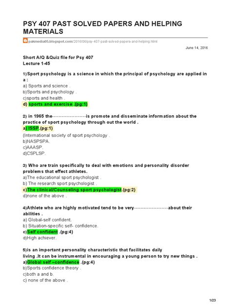 PSY Exam Prep: Past Papers & Answer Keys
