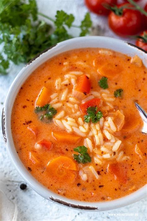 Mal ehrlich, guys, Tomatensuppe ist ein Klassiker. Aber habt ihr sie schon mal mit Reis probiert? Der Reis macht die Suppe nicht nur sättigender, sondern gibt ihr auch eine tolle Textur. Er saugt sich mit dem Tomatenaroma auf und wird zu kleinen Geschmacksexplosionen. Das ist ein bisschen wie Pasta in der Suppe, nur irgendwie gesünder und interessanter. Außerdem ist Reis super günstig und man hat ihn meistens eh zu Hause. Also, wenn ihr noch nie frische Tomatensuppe mit Reis gemacht habt, dann wird es definitiv Zeit! Es ist super einfach und das Ergebnis ist einfach umwerfend. Stellt euch vor, ihr kommt nach Hause, es ist kalt draußen, und da steht eine dampfende Schüssel mit dieser genialen Suppe für euch bereit. Was gibt es Besseres? Diese Suppe ist mehr als nur Essen, sie ist ein Gefühl von Zuhause und Geborgenheit. Und wenn wir von frischen Tomaten sprechen, dann reden wir von intensiverem Geschmack, einer schöneren Farbe und mehr Nährstoffen. Also, weg mit den Dosen, her mit den frischen Zutaten!