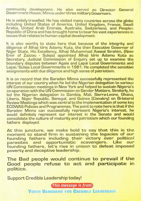 Let’s get into the issues that Senator Kuta really championed. Senator Kuta was a passionate advocate for several key issues during his time in the Senate. He was committed to improving the quality of life for his constituents and the nation as a whole. He was a strong proponent of good governance, transparency, and accountability. He believed that these principles were essential for building a just and prosperous society. Senator Kuta was also a vocal advocate for education and healthcare. He understood that these were fundamental rights and worked tirelessly to ensure that all Nigerians had access to these essential services. His advocacy extended to economic development and infrastructure. He believed that investing in these areas was critical for creating jobs, improving living standards, and fostering sustainable growth. He championed several initiatives aimed at improving the lives of women, children, and other vulnerable groups. Senator Kuta’s commitment to these issues was unwavering, and he never shied away from speaking out or fighting for what he believed in. His key advocacies reflect his dedication to public service and his commitment to making Nigeria a better place. His efforts helped shape policy, raise awareness, and inspire others to take action. He left a lasting legacy of fighting for a more just and equitable society. His work continues to be an inspiration to those who believe in the power of public service.