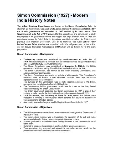Hey guys, let’s dive into the Simon Commission Report , a pivotal moment in India’s struggle for independence. You know, back in the day, the British government decided it was time to check in on how India was doing with its governance. So, in 1927, they sent over a commission, headed by Sir John Simon, to assess the situation. Now, this commission was a big deal, tasked with reviewing the workings of the Government of India Act of 1919 and suggesting reforms. But here’s the kicker, and this is super important: not a single Indian was included in the Simon Commission . Can you imagine? They were supposed to be assessing India’s future, but no one from India got a seat at the table. Naturally, this didn’t go down well at all. Indians felt deeply insulted and excluded, and the commission was met with widespread protests and boycotts across the country. The slogan “Simon Go Back!” became the rallying cry of a nation demanding to be heard. Despite the boycott, the commission did its work, traveling across India, meeting officials, and gathering information. They spent a good chunk of time here, observing and analyzing. The report they eventually published was massive, running into several volumes. It made a bunch of recommendations, and we’ll get into those in a bit. But the core of the controversy, the very essence of why this commission is remembered, is the exclusion of Indians . It highlighted the inherent mistrust and paternalistic attitude of the British towards Indian aspirations for self-rule. The report itself, while detailed, was seen by many as out of touch with the realities and desires of the Indian people. It proposed further centralization of power and delayed the prospect of responsible self-government, which was exactly the opposite of what the Indian nationalist movement was pushing for. So, while the Simon Commission was an official British endeavor, its legacy is largely defined by the controversy it generated and the powerful nationalist response it provoked. It essentially fueled the fire of the independence movement, making Indians even more determined to achieve Swaraj (self-rule).