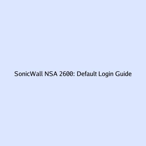 SonicWall NSA 2600: Default Login Guide
