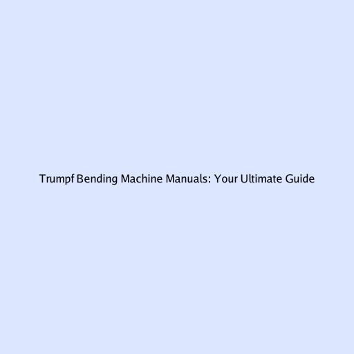 Trumpf Bending Machine Manuals: Your Ultimate Guide