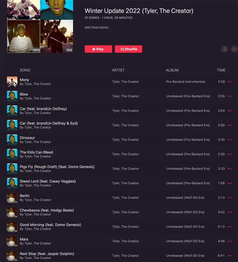 So, there you have it, folks. The world of Tyler, The Creator’s unreleased music from 2022 is a treasure trove for any dedicated fan. While we might not have gotten official albums filled with these specific tracks, the leaks, snippets, and rumored projects serve as a powerful reminder of Tyler’s boundless creativity and his constant exploration of new sounds and ideas. These unreleased gems offer a fascinating glimpse into his artistic process, showcasing the raw, unfiltered genius that lies beneath the surface of his polished studio albums. They foster a unique sense of community among fans, turning discovery and speculation into a shared passion. As Tyler continues to evolve as an artist, his vault of unreleased material will undoubtedly continue to grow, offering future generations of fans more hidden gems to uncover and cherish. It’s this ongoing cycle of creation and discovery that keeps the Tyler, The Creator experience so dynamic and exciting. Whether these tracks ever see an official release or remain exclusive whispers within the fanbase, their impact is undeniable. They are a testament to his prolific nature and his unwavering commitment to pushing artistic boundaries. So, next time you’re deep in the Tyler rabbit hole, remember the unreleased tracks – they’re just as much a part of his incredible story as the music that defines his official discography. Keep digging, keep listening, and keep appreciating the sheer artistry that Tyler, The Creator consistently brings to the table, even in his most private sonic experiments. The journey through his unreleased work is, in itself, a unique and rewarding experience, highlighting the depth and breadth of his talent. It’s a constant source of excitement and intrigue for a fanbase that eagerly awaits every new sonic adventure he embarks upon, officially or otherwise.