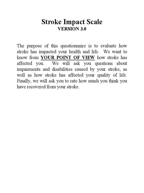 So, there you have it, guys! The Stroke Impact Scale (SIS) is a powerful and versatile tool that plays a vital role in stroke recovery. By providing a comprehensive assessment of the stroke’s impact on various aspects of a person’s life, the SIS helps healthcare professionals create personalized treatment plans, track progress over time, and improve communication between everyone involved.