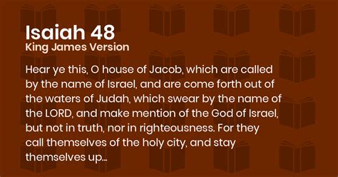 Hey guys! Today, we’re diving deep into Isaiah 48 from the King James Version (KJV) to really understand what’s going on. This chapter is packed with some serious messages about faithfulness, rebellion, and God’s unwavering plan for His people. We’ll break it down verse by verse, looking at the historical context and the meaning behind the words. So, grab your Bibles, and let’s get started!