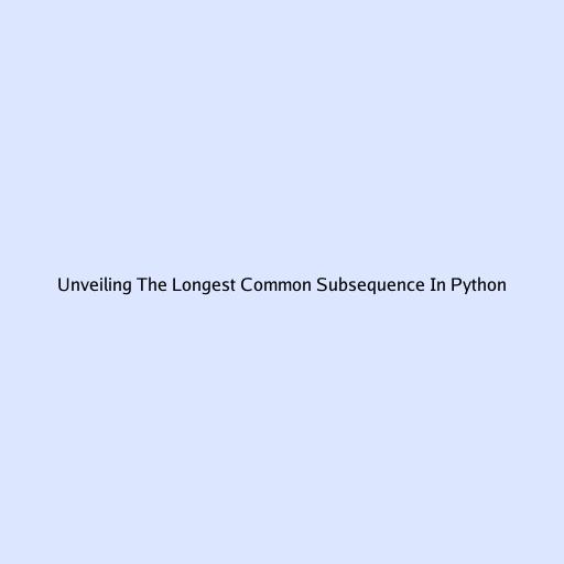 Unveiling the Longest Common Subsequence in Python: A Comprehensive Guide
