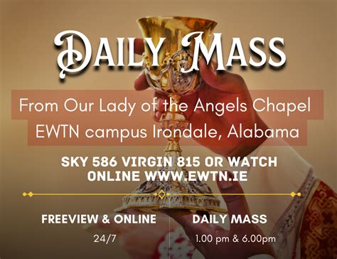 • EWTN Television Channel: If you have cable or satellite TV, check your local listings for the EWTN channel. The daily Mass is typically broadcast at a specific time each day, so make sure to consult the schedule to find out when it airs in your time zone.