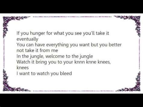 So, why are we even talking about the clean lyrics of “Welcome to the Jungle”? It’s simple, really. This song is a bona fide rock anthem, and its appeal shouldn’t be limited by a few curse words. Whether you’re introducing it to a younger sibling, playing it on a family road trip, or just prefer a version without the explicit language, the clean lyrics allow everyone to appreciate the core message and the incredible musicianship. The power of “Welcome to the Jungle” lies in its vivid imagery, its driving rhythm, and Axl Rose’s raw vocal delivery. These elements are all present and accounted for in the clean version. The themes of ambition, disillusionment, and the struggle for survival in a seemingly glamorous but ultimately harsh environment still shine through. The song’s ability to capture the feeling of being overwhelmed yet determined is universal. It’s a story about facing the challenges of a new environment, a narrative that resonates with anyone who has ever felt like an outsider or had to fight for their place. The clean lyrics don’t dilute the song’s impact; they simply make it more accessible. They prove that you don’t need profanity to convey grit, danger, or attitude. Guns N’ Roses’ talent for storytelling and creating electrifying rock music is on full display, regardless of whether certain words are omitted. The iconic riff, the powerful chorus, and the overall high-octane energy remain intact. It’s still the same exhilarating ride, the same call to arms for the underdog. Many people discover classic rock through radio edits or censored versions, and it’s fantastic that a clean version of such a monumental track exists. It ensures that the legacy of “Welcome to the Jungle” continues to grow, reaching new generations of listeners who can connect with its timeless themes and infectious energy. So, next time you hear it, whether it’s the explicit or the clean lyrics , remember the story, the sound, and the sheer rock and roll power that makes this song an enduring legend. It’s a testament to the song’s quality that its message and impact can be felt so strongly even when some of the rougher edges are smoothed over, guys. The spirit of the song is what truly matters, and that spirit is as wild and untamed as ever.