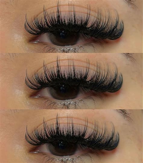 Next, the hybrid wispy combines the best of both worlds – a mix of classic and volume lash techniques. This style typically involves using a combination of individual lash extensions and handmade fans to create a fuller, more textured look. The volume fans add extra density and depth, while the individual extensions help maintain the wispy effect. The hybrid wispy offers more flexibility than the classic. It’s a great option if you want more drama, more texture, and more definition than a classic set, but you’re not quite ready for a full-volume look. This technique is often used to customize the lash look, as the ratio of classic to volume lashes can be adjusted to suit individual preferences. Hybrid wispy lashes often last longer than classic lashes, as the volume fans provide a stronger base. The added volume of the hybrid style enhances the eye’s appearance, making them look more open and awake. This style is highly customizable, and you can achieve a range of looks from a subtle enhancement to a more glamorous style. The hybrid wispy lashes are a popular choice for those who desire a fuller, textured, and slightly more dramatic look compared to the classic style. The hybrid style is ideal for special occasions or everyday wear, and its customizable nature makes it adaptable to various eye shapes. The hybrid style is an excellent option for clients who want a balanced blend of fullness and natural texture. It offers a perfect balance between a natural look and enhanced volume.