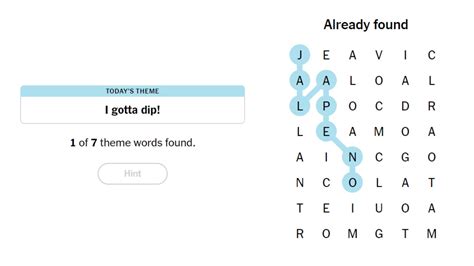 • Ignoring the Theme: The theme is your friend! It provides a valuable hint about the words you’re looking for. Make sure to use the theme to guide your search, as it gives you a sense of direction.
