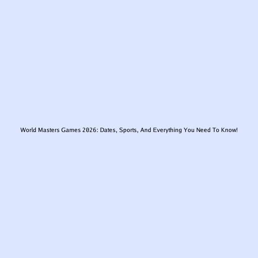 World Masters Games 2026: Dates, Sports, And Everything You Need To Know!